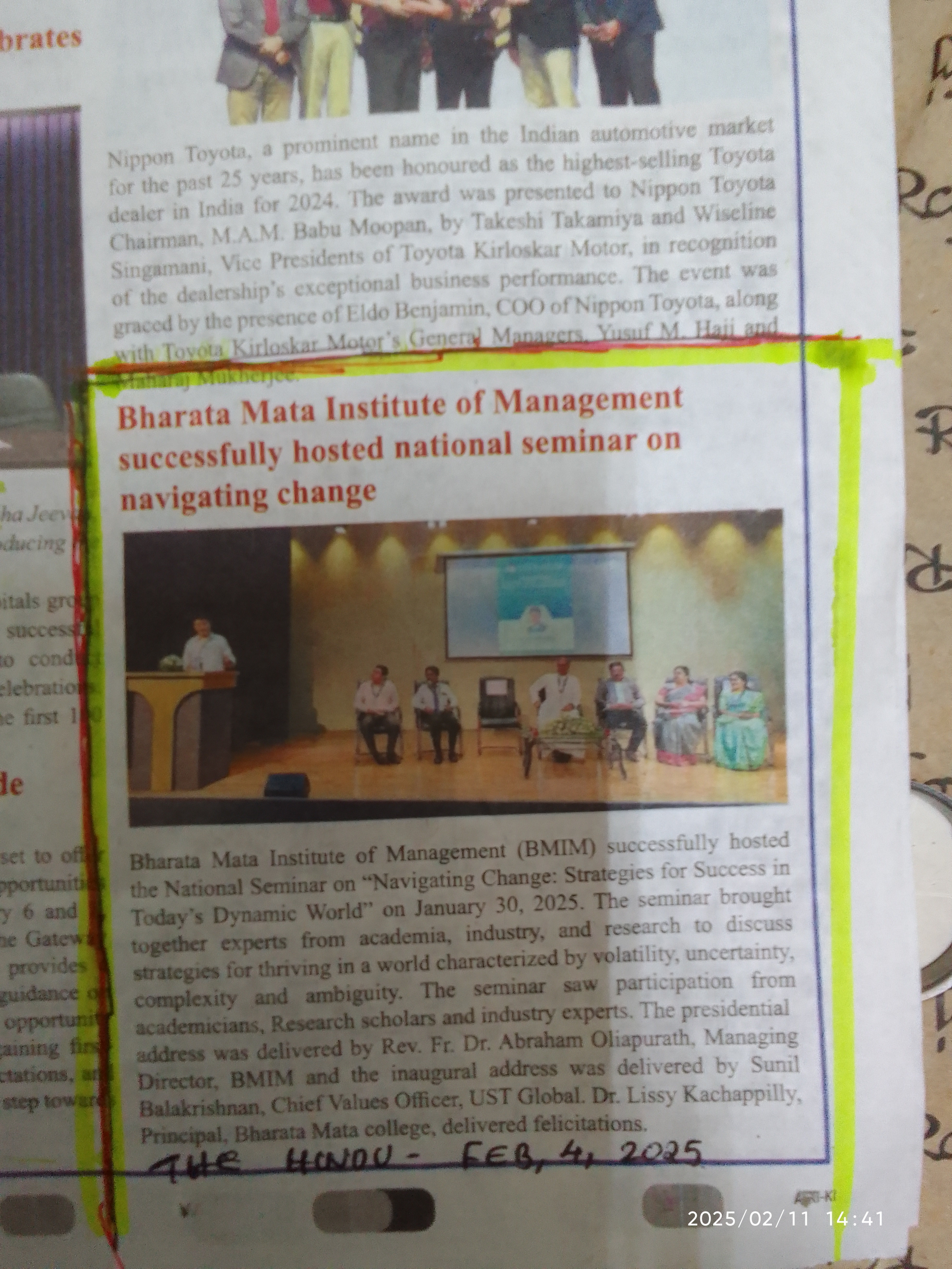 Bharata Mata Institute ofManagement Successfully hosted national seminaron navigating change