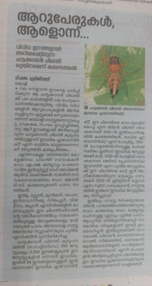 The Chattakaran spider, which was known as a variety of species, has been discovered to be a single species.