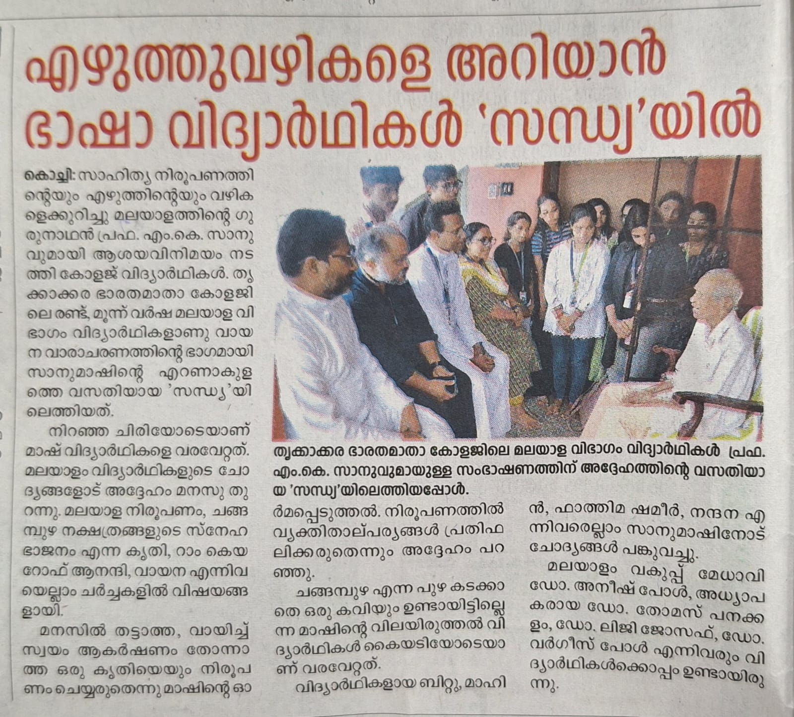 Language students in the evening to learn about writing styles :Dep of Malayalam