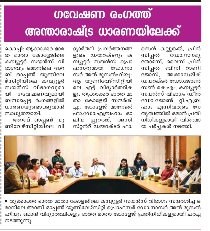 International Conference of Computer Science Department on Reseach with Oman Arab Open University Bharatamata College